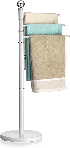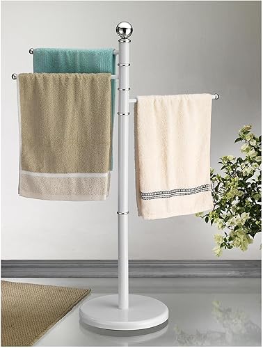 CARO-Möbel Handtuchhalter Petra Handtuchständer Badetuchständer mit 3 beweglichen Handtuchstangen, Metallgestell in weiß lackiert