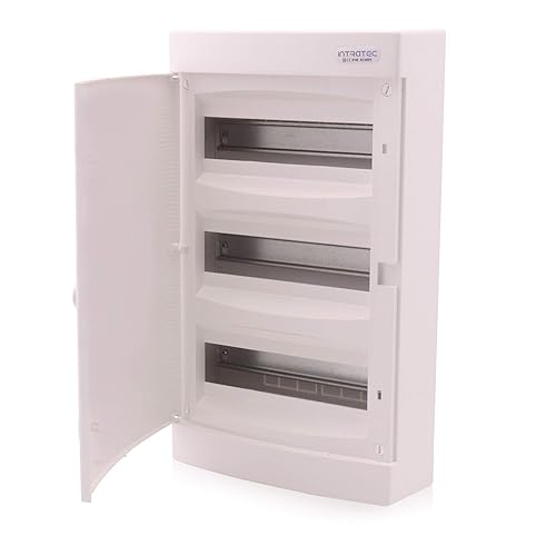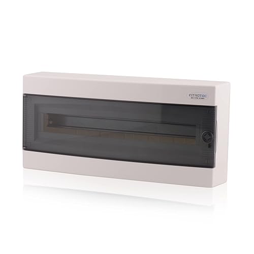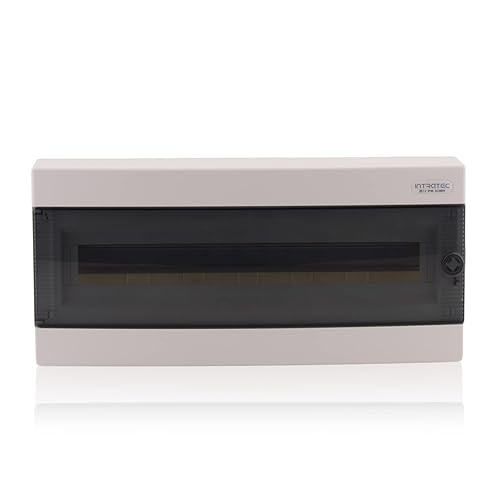 Intratec Sicherungskasten Aufputz, IP40 – Verteilerkasten Gehäuse innen, Verteilerkasten mit transparenter Tür für Trockenraum-Installation, 4-reihig, 48 Module, 653 x 287 x 112 mm, Weiß