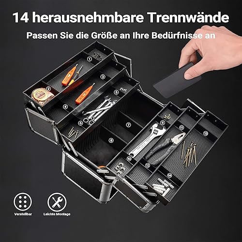 Wiltec Alu Transportkoffer, Aufbewahrungskoffer mit 2 Schlüsseln, Universalkoffer für Werkzeug, Hobby, Arbeit, Mehrzweckkoffer mit Innenaufteilung