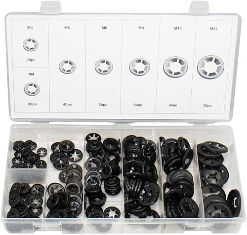 Sicherungsscheiben/Sicherungsring Sortimentskasten diverse Größen M3 M4 M5 M6 M8 M10 M12 260-tlg. (im Aufbewahrungsbox/Sortimentsbox)