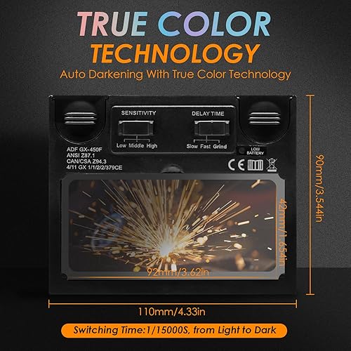CCLIFE Automatik Schweißmaske Solar Schweißhelme Schweißschirm Optische Klasse: 1/1/1/2