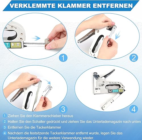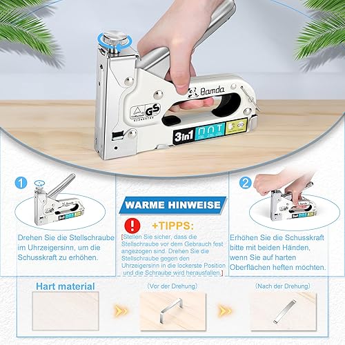Bamda Handtacker, 3 In 1 Robuster Leistungsstarker Holztacker mit 3000 Klammern, Tackerpistole für Holz, Tischlerei, Dekoration, Kabelbefestigung