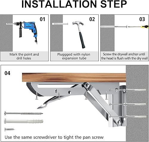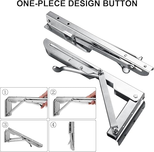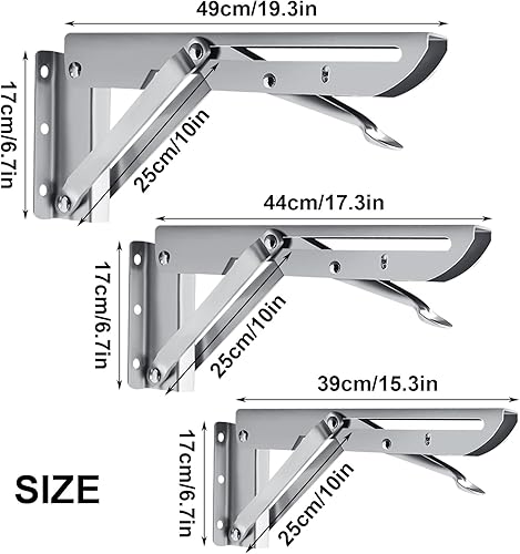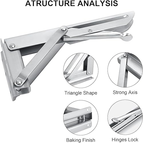 2 Stück 500mm Klappkonsole Schwerlast Edelstahl, Klappwinkel Belastbarkeit 100kg, Klappbare Regalträger für Tisch und Wandhalterung, Schwerlast Konsole für Heimwerkerprojekte (Silber)
