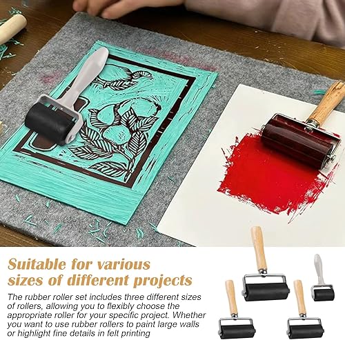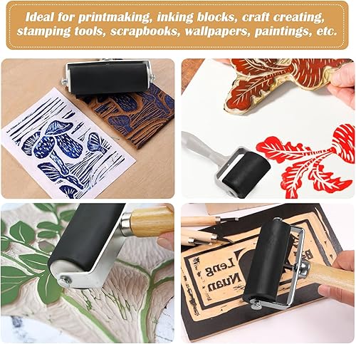 WIYETY 4 PCS Gummiwalze Gummiroller: Kleberwalze Gummiwalze Gummi, Linoldruck Farbwalze, Malerwalze Gummirolle, Gummiwalze für Tintenfarbblock, Stempeln, Drucken, Tapeten Kunsthandwerk 3,5/6/10cm
