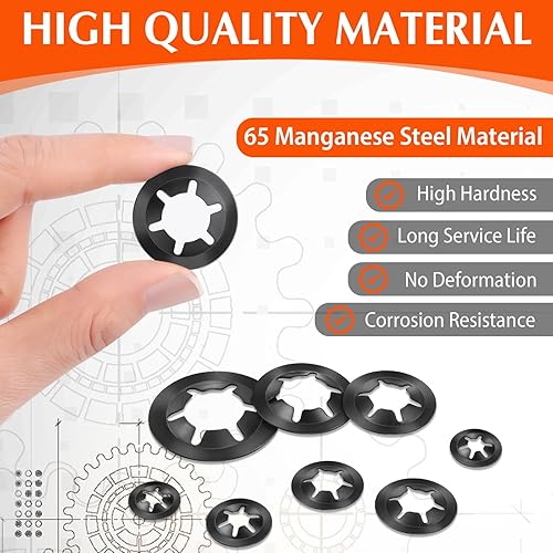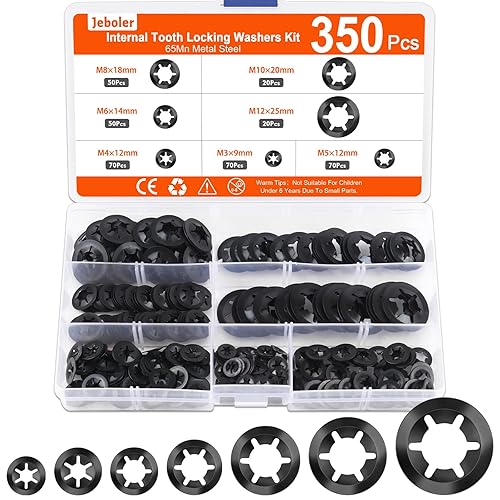 Jeboler 350 Stück Sicherungsscheiben, M3-M12 Klemmscheiben Starlock Unterlegscheiben, Innenzahn Schnellverschluss Klemmring Sicherungsring Set 65 Manganstahl Sicherungsscheibe Sortiment Kit - Schwarz