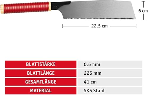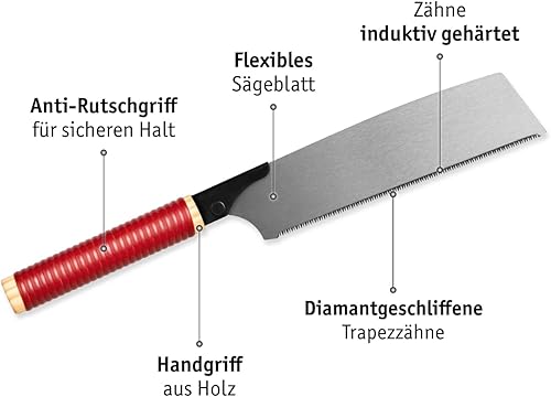 WALTER Japansäge 225 mm – Japanische Feinsäge mit diamantgeschliffenen 7 Z/cm Trapezzähnen, SK5-Stahlblatt & FSC-Holzgriff, Handsäge für Holz & Holzbearbeitung, inkl. Schutzhülle