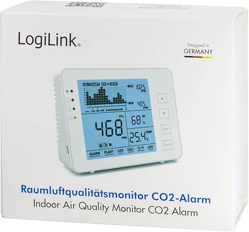 LogiLink SC0115 - CO2-Messgerät/Ampel (CO2-Konzentration 5000-ppm-Bereich) mit Ampel & Alarm für bessere Luftqualität, Temperatur- & Luftfeuchtigkeitsanzeige, weiß