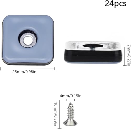 DXLing 24 Stück Teflon Möbelgleiter zum Schrauben 25x25mm Teflon Möbelgleiter Rechteckig Stuhlgleiter Teppichgleiter Gleiter Furniture Glides für Möbel Sessel Stuhlbeine