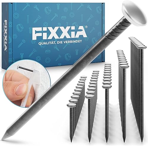 FIXXIA 50 Stahlnägel mit silberfarben Kopf gemischte Längen 20/25/30/40/50mm, Bildernägel, Nägel zum Bilder aufhängen, Bildaufhänger, Betonnägel, Aufhänger für Bilder (ohne Einschlaghilfe)