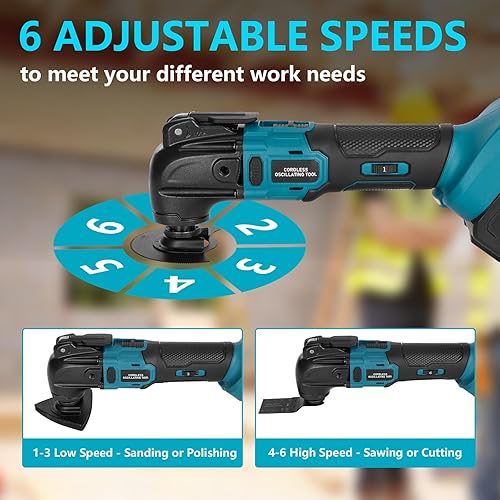Yofuly Multitool Akku Multifunktionswerkzeug für MMAKI-TA 18V Akku, Multimaster 6 Einstellbare Geschwindigkeiten, Oszillationswerkzeug zum Trennen, Schleifen und Schaben (Batterien Nicht Enthalten)