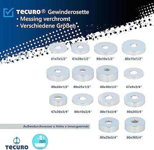 tecuro Gewinderosette (3/4) Ø 27 mm x Ø 80 mm x Höhe 30 mm, messing verchromt