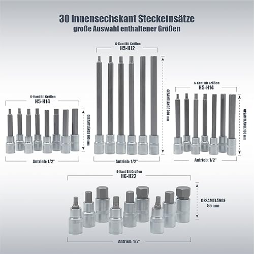 30tlg H5-H22 Innensechskant Steckschlüssel Satz Sechskant Nüsse für Inbus Schrauben