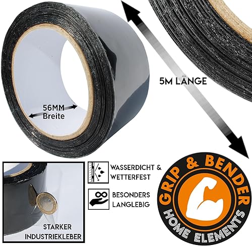 GRIP&BENDER PVC Reparatur-Klebeband (5Meter) Wasserdichtes Tape zum Abdichten – Selbstklebendes Flick-Set (56mm x 5m)