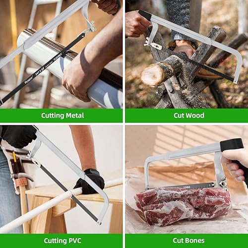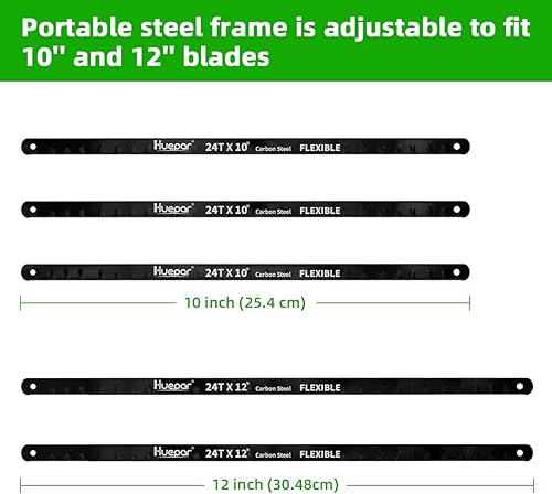 Huepar Metallsäge 250mm / 300 mm Einstellbare Bügelsäge, mit 4 austauschbare Sägeblätter (2 x 250mm, 2 x 300 mm) für Stahlrohr, PVC, gefrorenes Fleisch, Tischlerei - HGJ121