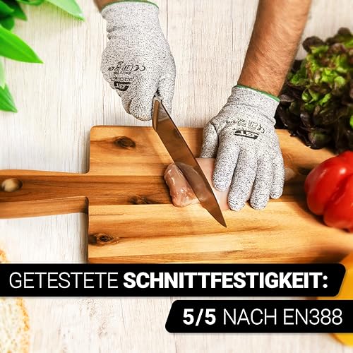 GTprotect PREMIUM Zertifizierte, Schnittfeste Handschuhe - Schnittschutzhandschuhe für Kinder, Damen und Herren jeden Alters - Schutzhandschuhe geeignet fürs Kochen und sonstige Arbeiten M