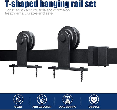 Beschläge für Schiebetür, Schienensatz für Hängetür, komplettes industrielles Set, Schiebetürsystem (183 cm – T-Form – Einzeltür)