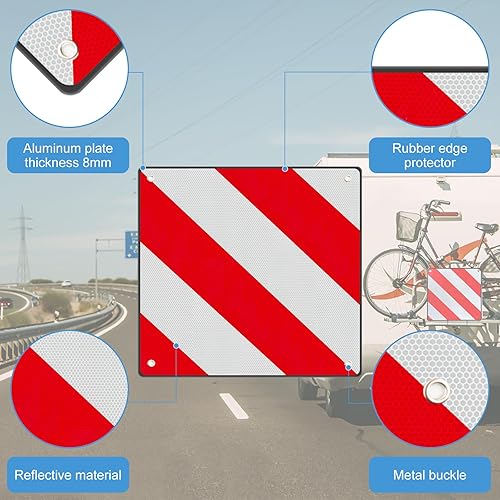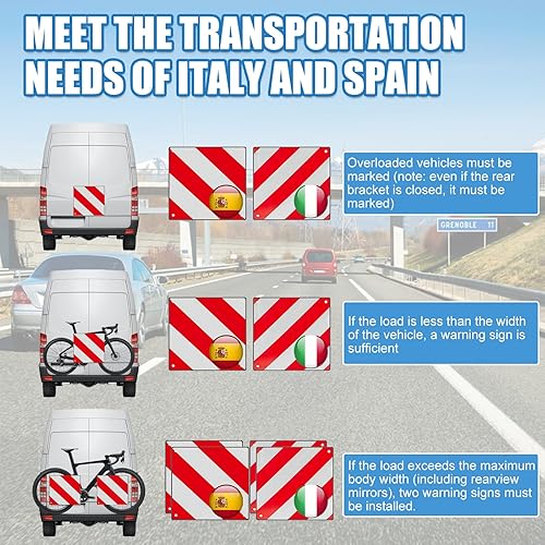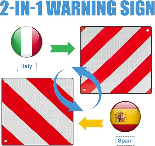 Afenau Warntafel Fahrradträger, 2 in 1 Warntafel Italien Spanien mit 4 Spannseilen, Warntafel für Fahrradträger, Warnschild Fahrradträger für Fahrradträger, Heckanhänger, Wohnwagen (50 * 50cm)