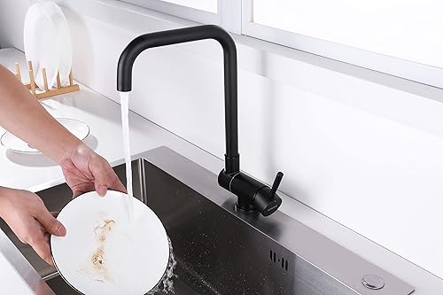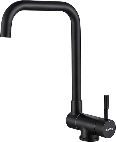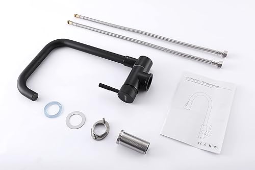 KINSE Vorfenster-Küchenarmatur klappbar Edelstahl | 360° Schwenkbar Einhebel Unterfenster Armatur | Hochdruck Wasserhahn Küche | Schwarz