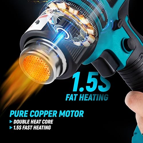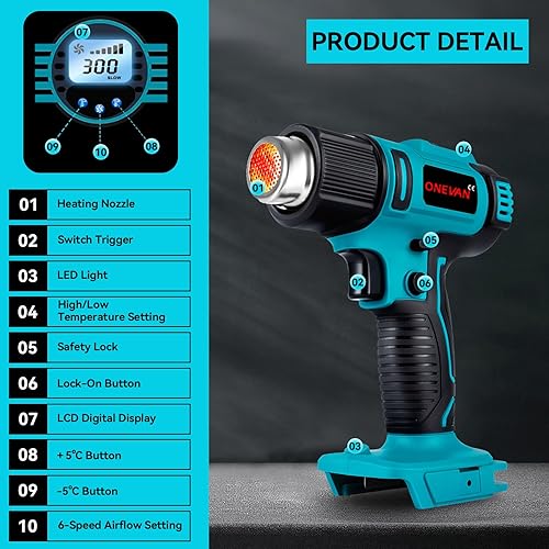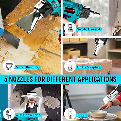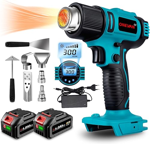 ONEVAN Akku Heißluftfön Kompatibel mit Makita 18V Akku, 50-550℃ Heißluftpistole Akku mit LCD-Digitalanzeige, Kabellos Heißluftgebläse Inkl. 5 Düsen und 2 Schabern (ohne Akkus und Ladegerät)