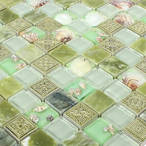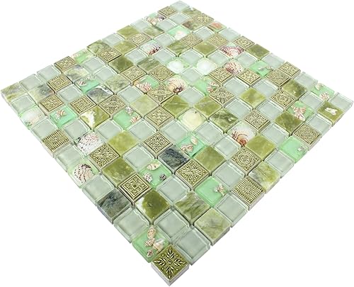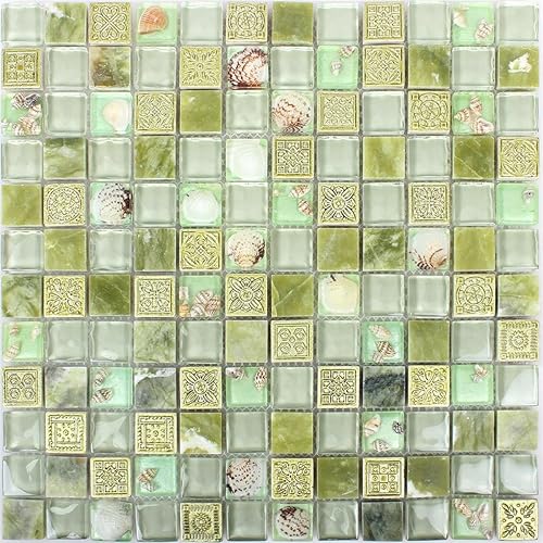 Glasmosaik Natursteinfliesen Tatvan Muschel Grün | Wandfliesen | Mosaik-Fliesen | Glas-Mosaik | Fliesen-Bordüre | Ideal für die Küche und Badezimmer (auch als Muster erhältlich)