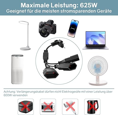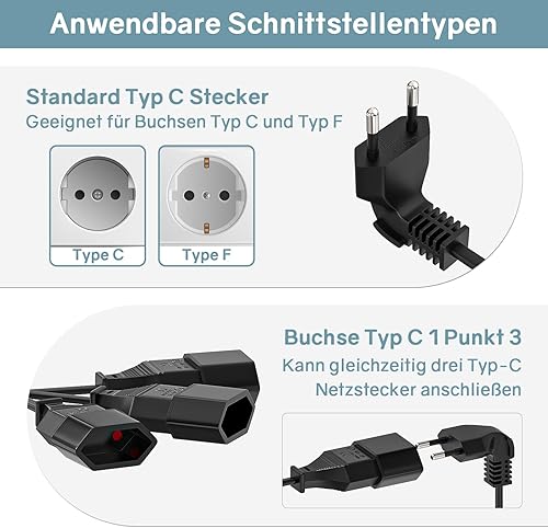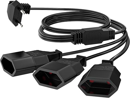 VIEVRE Verlängerungskabel Flachstecker, 3 in 1 Eurostecker Verlängerung, Flachstecker Verlängerung, Stromkabel Flach 250V, Verlängerungskabel Flach 50cm für TV PC Computer Monitor