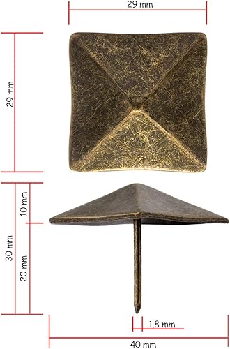 FUXXER® 40x Zier-Kopf-Nägel, Möbel-Nägel, Polster-Nägel, Antik Bronze Optik, 12x12 mm