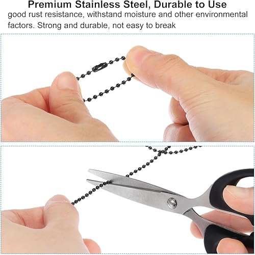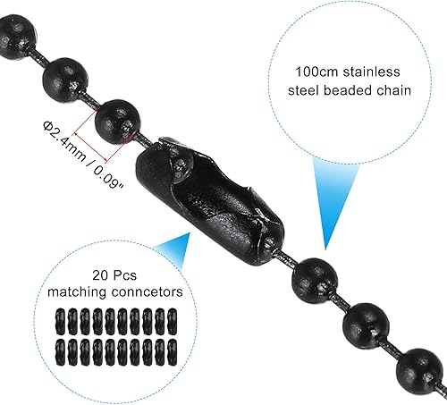QUARKZMAN 10m/32.8ft Perlen Kugel Kette 2.4mm Edelstahl Zugkette Verlängerung mit 20Stk Steckverbinder für Anhänger Kette Schlüsselanhänger Ringe Heimwerken Schwarz
