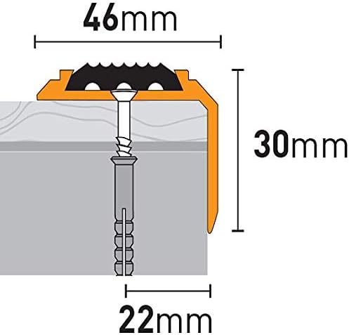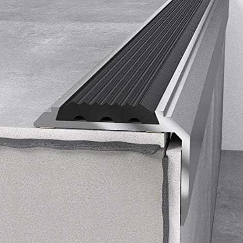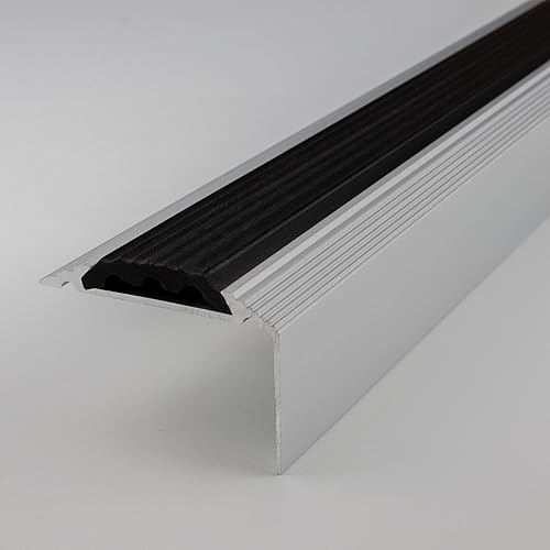 PROVISTON Treppenprofil - 46 x 30 x 1200 mm - Silber mit Einlage - Treppenkante Aluminium - Aluminiumprofil - Winkel - Treppenwinkel