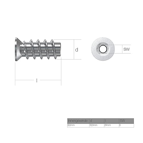 20 Stück Einschraubmutter mit Innensechskant M6x24 mit Abdeckrand – Stahl verzinkt, rostfrei – Einschraubmuffe, Gewindemuffe, Gewindeeinsatz, Gewindebuchse, Gewindeeinsatz für Holz