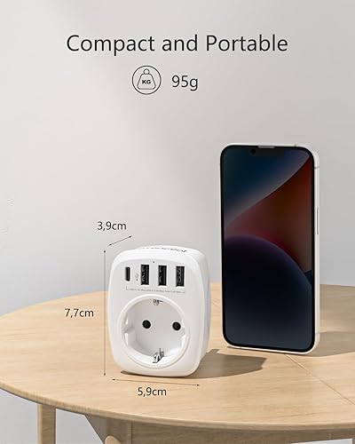 LENCENT USB Steckdose Mehrfachstecker EU Adapter 5-in-1 Steckdosenadapter mit 3 USB Ladegerät Anschlüße 2,4A, 1 Typ-C Port 3A, Wand Steckdose Schuko 4000W Stromadapter Stecker mit Kindersicherung Weiß