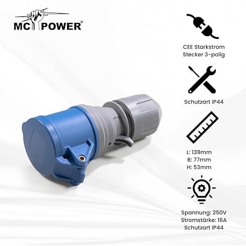 MC POWER - CEE-Steckdose Wandmontage IP44 Kupplung | 415V, 16A Starkstrom Wandsteckdose | 5-polig für Wohnmobil Boot Aussenbereich Camping Caravan Industrie Handwerk