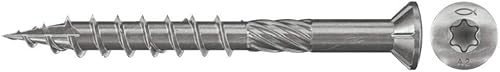 fischer Terrassenschraube 5,0 x 70, Senkkopf, Teilgewinde, nicht rostender Stahl A2, Innenstern Torx-Antrieb, zum Verschrauben von Terrassenbeplankungen auf Holz-Unterkonstruktionen, 100 Stk