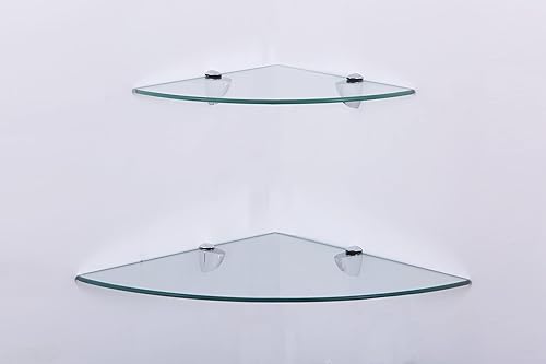 Euro Tische Glas Eckregal 35x35cm, Wandregal für Badezimmer, Duschregal Bad, Glas Badregal mit 6mm ESG Sicherheitsglas, Verschiedene Größen (Klar)