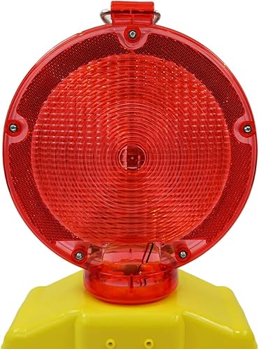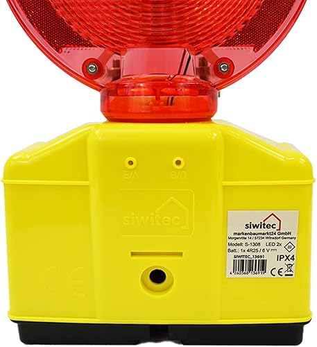 2 x siwitec LED Baustellenleuchte gelb inkl. 4 x Blockbatterien Typ 4R256V 7Ah, LED Warnleuchte für Baustellen im Straßenbau mit Lampenschlüssel, Baustellenabsicherung