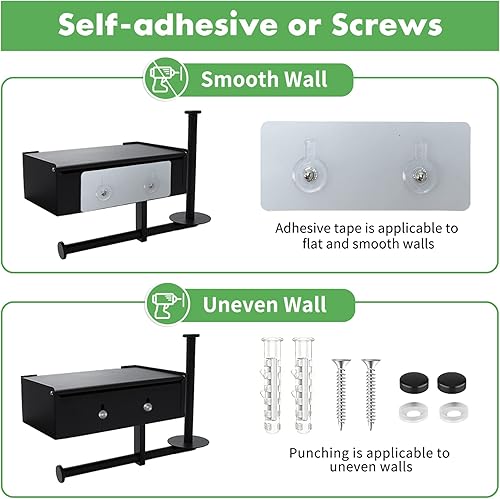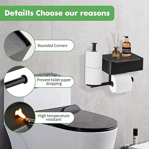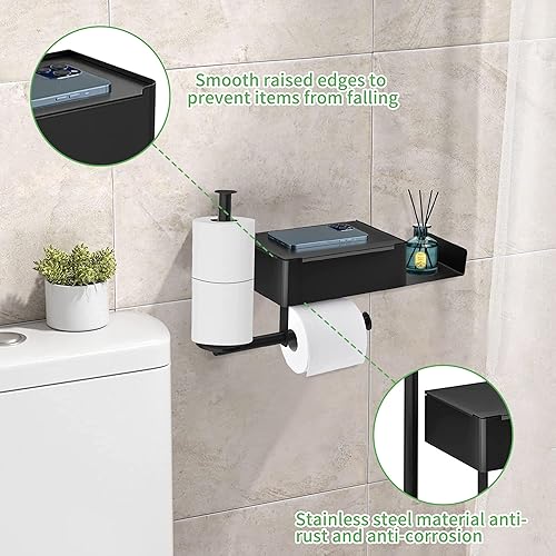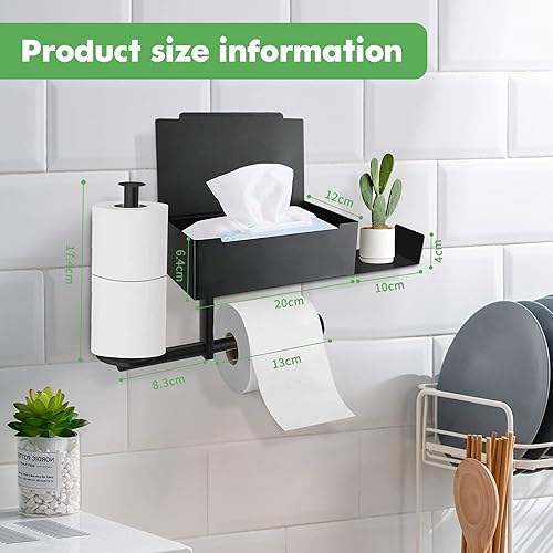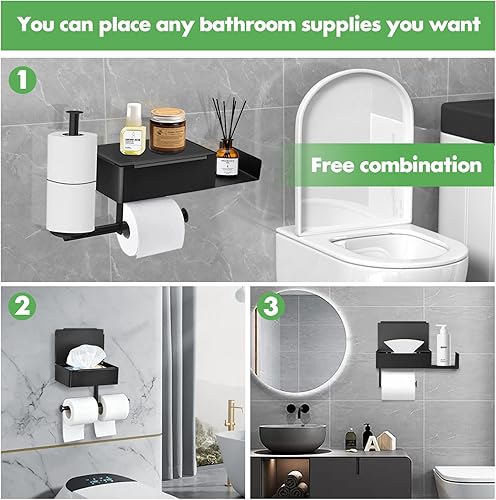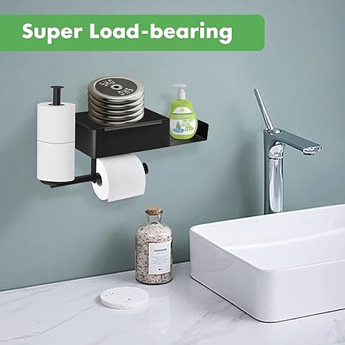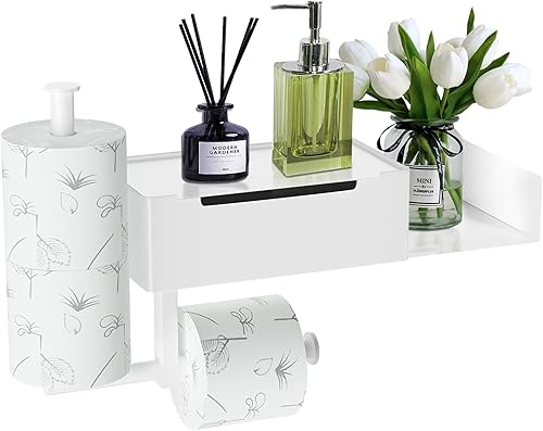 Airminti Klopapierhalter mit Ablage, Klopapierhalter mit Feuchttücherbox Edelstahl WC Rollenhalter, Toilettenpapierhalter ohne Bohren Selbstklebend für Bad und Küche mit 2 Ersatzrollenhaltern, Weiß