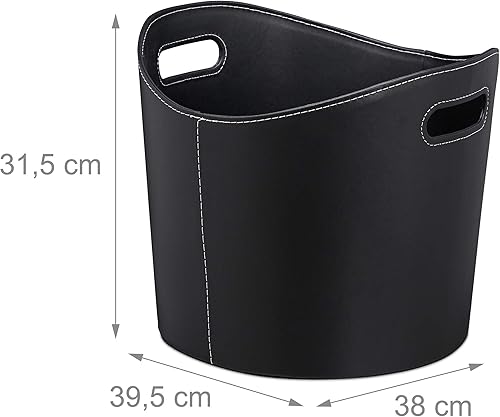 Relaxdays, schwarz Kaminholzkorb Kunstleder XL, stabiler Feuerholzkorb mit Tragegriffen, für Brennholz & Zeitungen, oval, 80% Pappe