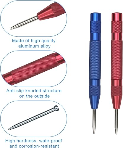 2 Stücke Automatik Körner, AMONENZ Körner 130mm, Automatischer Körner, mit 3 Ersatzspitzen, Center Punch, Verstellbare Spannung Federkörner, für Metall Holz Glas Dünne Stahlbleche