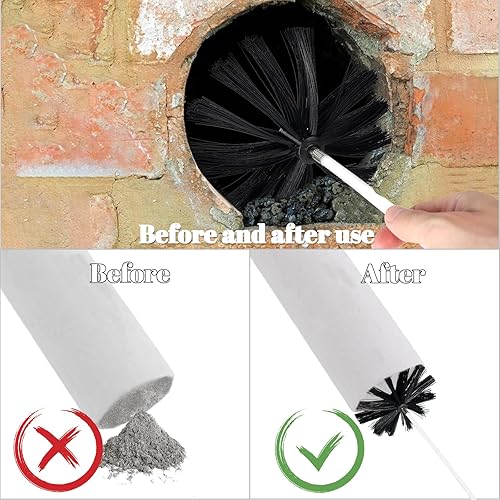 ZLLZPZD 4.8m Kaminbesen,Ø150mm Ofenrohrbürst mit 12 Flexible Stangen 410mm,Schornsteinfeger Bürste Stange Set,Kaminbürste mit 2 Bürstenköpfen,Schornsteinbesen Kit für Kamin/Abwasserrohr/Trockner Vent