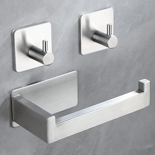 YIGII Toilettenpapierhalter Ohne Bohren Klopapierhalter Edelstahl Gebürstet Wc Rollenhalter Selbstklebend Klorollenhalter und 2 Stück Klebehaken für Bad und Küche
