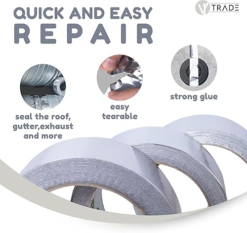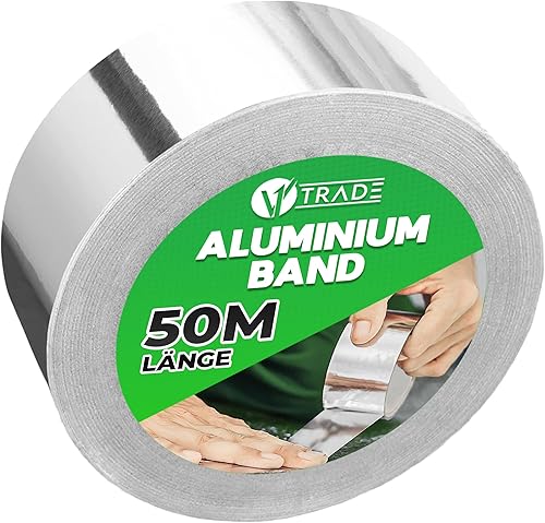V1 TRADE Aluminium Klebeband Hitzebeständiges 48mm x 50m - 1 Rolle Wasserdichtes Alu Klebeband zum Reparieren von Metalloberflächen - Metallklebeband UV Beständig - Starke Aluband Selbstklebend
