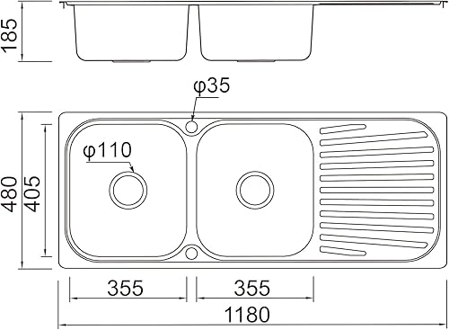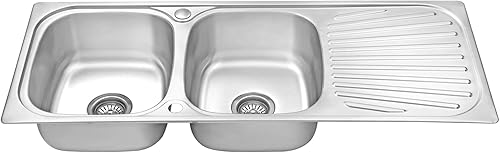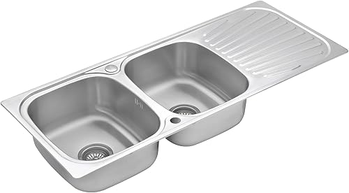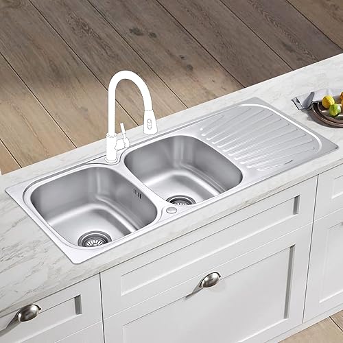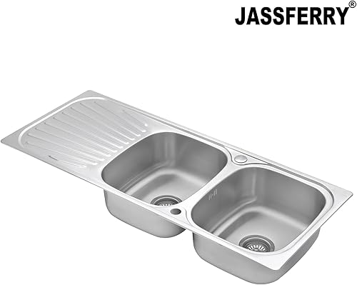 JASSFERRY Edelstahl Küchenspüle 2 Becken, Reversibel Einbauspüle mit Siphon-Ablauf und Überlaufgarnitur 1180 x 480mm