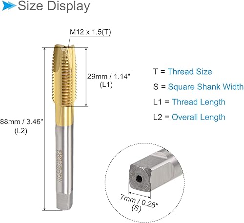 CoCud Spiralförmige Gewindebohrer Metric M12 x 1.5 Gewinde Titan Beschichtet Schnellarbeitsstahl 6542 Schraube Fräsen Gewindebohrer - (Anwendungen: für Abhören Bohrung Maschine) 1Stk