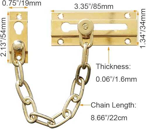 Tiazza Türkette aus reinem Messing, Diebstahlschutz, Sicherheitskette für jeden Türtyp oder jede Größe aufgrund des einzigartigen schmalen Designs