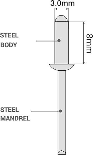 SKIR'CO (200 Stück) Blindnieten aus verzinktem Stahl 3,0 x 10 mm Stahldorn Popnieten Kuppelkopf DIN 7337 Nieten