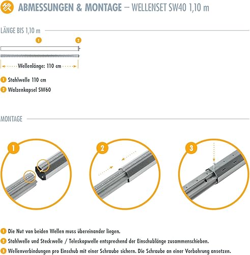 3T-MOTORS Rolladen-Set mit Wippschalter, Einbau-Material und Rollladen-Welle SW40, Rohrmotor, Rolladenantrieb, TÜV geprüft, verschiedene Größen, Set bis 1,10 m