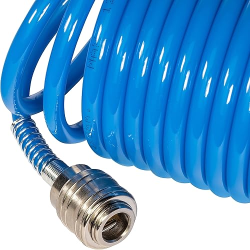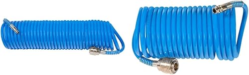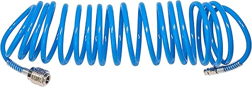 Güde 41400 SB Druckluft Spiralschlauch 5 M (mit Schnellkupplung und Stecknippel, Knickschutz) & BGS 3208 | Druckluft-Ausblaspistole | 100 mm | Drukluftpistole | Griff aus blauem Nylon-Fiberglas