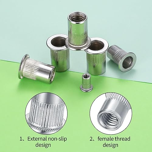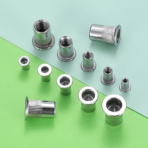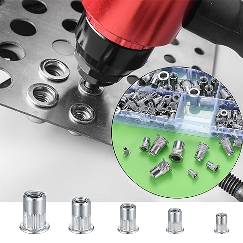 165 Stück Nietmuttern Sortiment Set, M3/M4/M5/M6/M8 Blindnietmuttern, Kohlstahl Einnietmuttern Set, Flachkopf Gewinde Rivet Nutsert Cap Muttern Nietmuttern