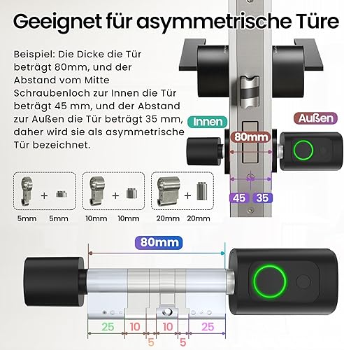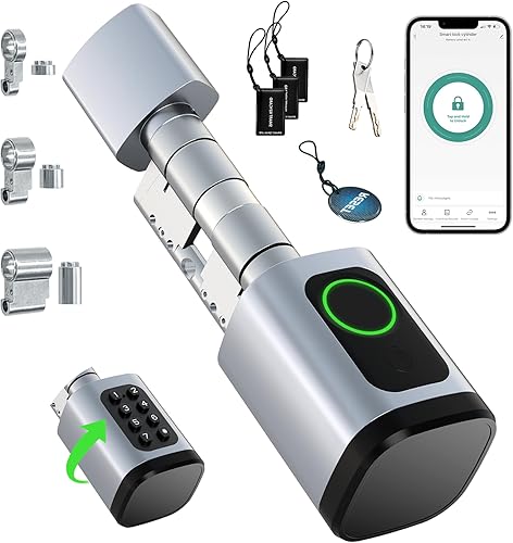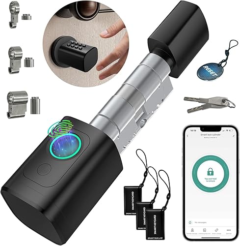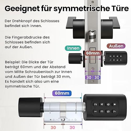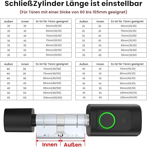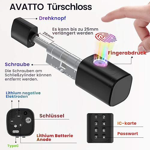 AVATTO Smart Türschloss mit Fingerabdruck und Passwort für 60-90mm Tür, Schließzilinder Länge ist einstellbar, mit Schlüssel, IC-Karte, Unterstützen Smart Life App Fernbedienung