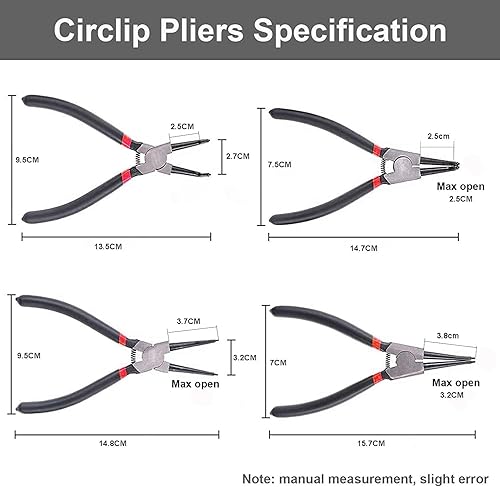 Emsmil 4 TLG 150mm Sprengringzangen Sicherungsringzangen Set Gebogen Gerade 6 Zoll Seegeringzange für Außensicherungsringe und Innensicherungsringe Rutschhemmend Sicherungszange