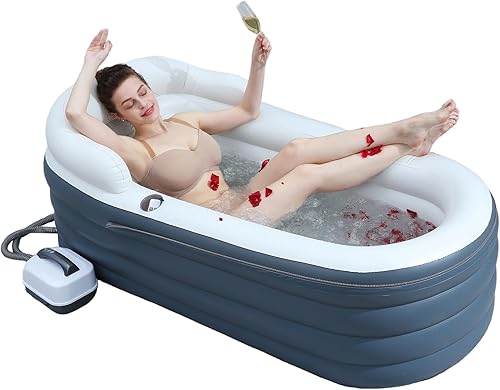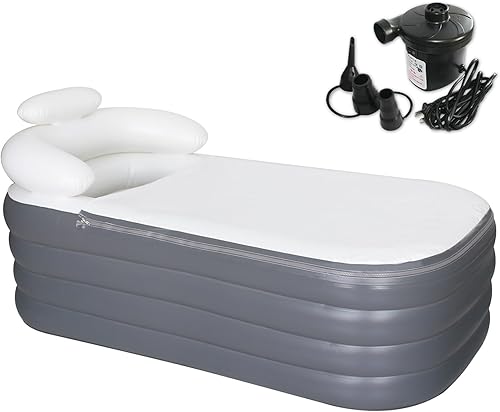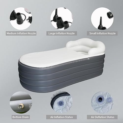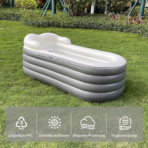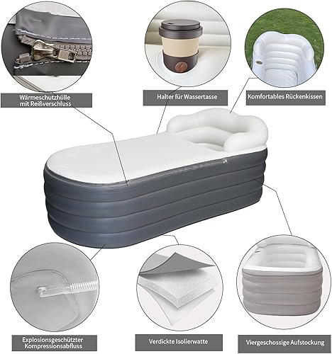 Aufblasbare Einweichbadewanne für Erwachsene, große tragbare Eisbadewanne, Spa, Einweichwanne mit Reißverschlussabdeckung, entworfen mit Kopfstütze, Getränkehalter (Luftpumpe im-168x76x68cm)